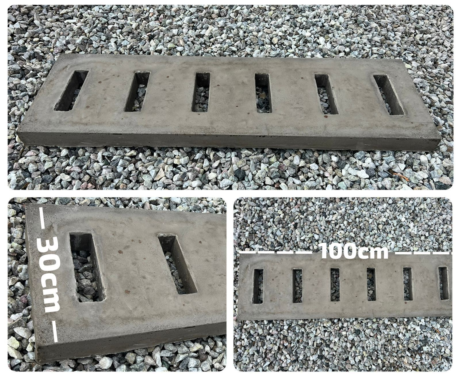 - De hormigón armado vibrado de 60 x 40 x 8 cm.