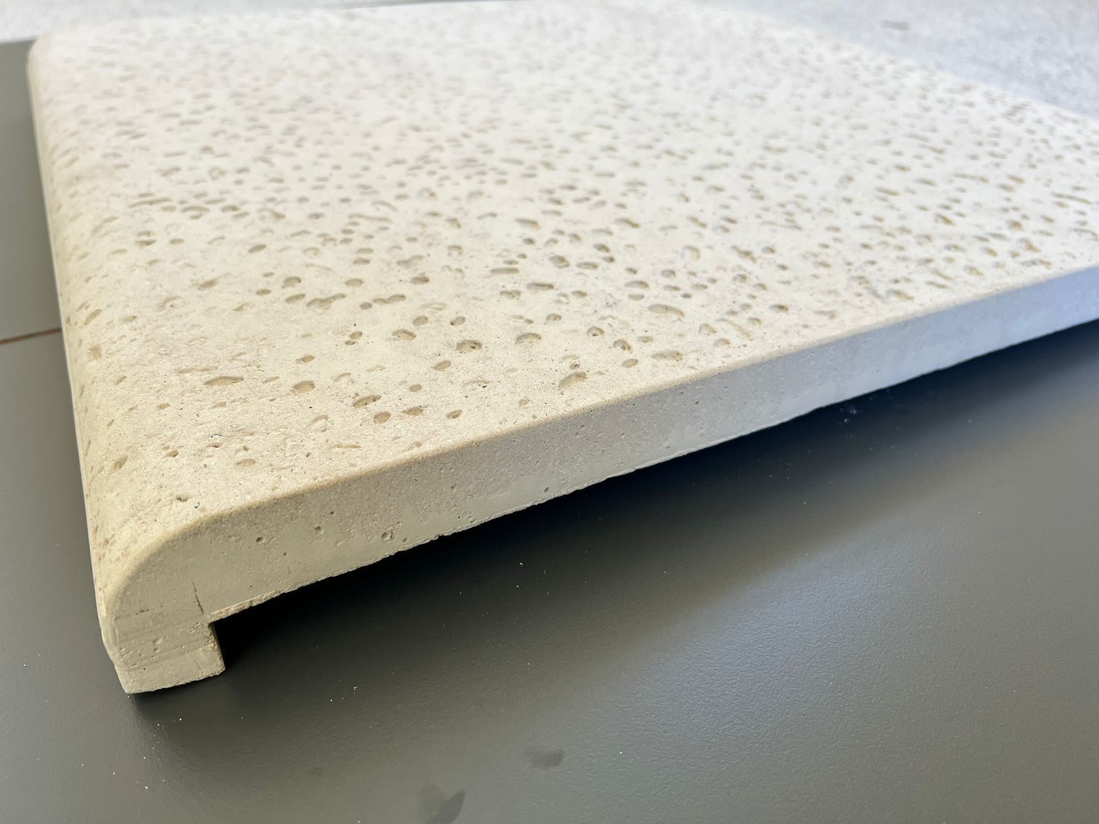 - Escalón de hormigón armado de radio 0.85 cm.